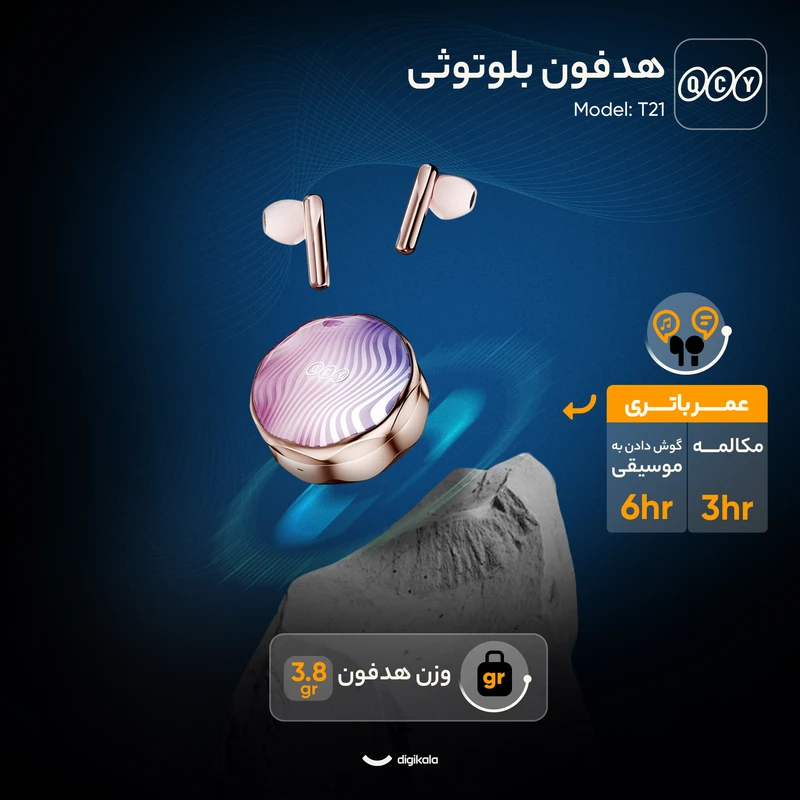 هدفون بلوتوثی QCY T21 با طراحی خارقالعاده گوشیها و باکس شارژ، نه تنها یک هدفون کارآمد است بلکه یه اثر هنری جذاب به نظر میرسد. این هدفون با فناوری TWS (True Wireless Stereo) و بلوتوث نسخه ۵.۳، به سادگی با هر گجتی که دارای بلوتوث است، متصل میشود. درایورهای ۱۰ میلیمتری آن، صدای شفاف با باس قدرتمند و پاسخ فرکانسی ۲۰ تا ۲۰۰۰۰ هرتز را تضمین میکنند که برای موسیقی و مکالمه ایدهآل است. هدفون T21 با وزن سبک ۳.۸ گرم برای هر گوشی، به کاربران اجازه میدهد تا زمان بیشتری به راحتی از آن استفاده کنند. نشانگر LED و قابلیت اتصال بیسیم، کاربری آن را ساده و کاربردی کرده است. همراه با این مدل با ظرفیت باتری ۲۹۰ میلیآمپر ساعت، از ۶ ساعت پخش موسیقی و ۳ ساعت مکالمه بیوقفه لذت خواهید برد. کیس شارژ با درگاه USB Type-C نیز امکان شارژ سریع و آسان را فراهم میکند. QCY T21 گزینهای مناسب برای کاربری عمومی است و با حساسیت ۱۰۸ دسیبل و امپدانس ۳۲ اهم، تجربهای ایدهآل برای علاقهمندان به موسیقی و تماسهای صوتی ارائه میدهد.