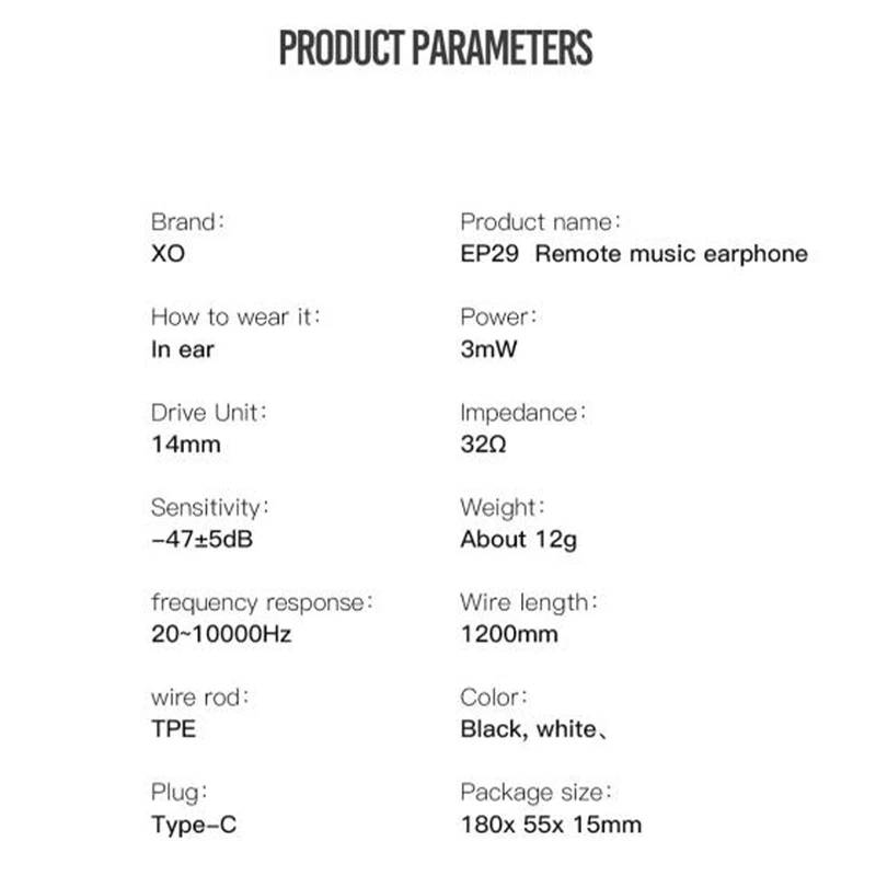 هندزفری اصلی ترین ابزار برای گوش دادن به موسیقی می باشد و به شما این امکان را می دهد تا بتوانید موسیقی مورد علاقه خود را به تنهایی در هر مکانی گوش کنید. شرکت ایکس او با ساخت هندزفری سیم دار تایپ سی ایکس او XO EP29 Type C Earphone باعث شده تا بتوانید به راحتی موسیقی مورد علاقه خود را با کیفیت بالا گوش کنید. امروزه به دلیل کم کردن هرچه بیشتر قطر گوشیها پورت جک 3.5 میلی متری از گوشیهای جدیدی که به بازار عرضه می شوند حذف شده و پورت تایپ سی موجود روی گوشیها به عنوان ورودی هندزفری هم مورد استفاده قرار میگیرد. این محصول از گوشی های سامسونگ پشتیبانی نمی کند. طراحی هندزفری سیمی ایکس او EP29 از پلاستیک مقاوم TPE ساخته شده و دارای طراحی ساده و زیبای می باشد. این طراحی انعطافپذیری و در عین حال مقاومت کابل را در برابر پارگی، کشش و گره خوردگی تضمین می کند. هندزفری ایکس او دارای وزنی حدود 12 گرم می باشد؛ بعلاوه اندازه سیم این محصول حدود 1.2 متر می باشد. بر روی سیم این محصول یک کنترل پنل برای کنترل موزیک و تماس قرار گرفته است. پورت تایپ سی کانکتور هندزفری سیمی ایکس او EP29 تایپ سی (Type C) می باشد. جنس کانکتور این محصول از فلز بوده که محکم و مقاوم می باشد. کنترل پنل روی کابل هندزفری ایکس او XO EP29 یک کنترل پنل با سه دکمه قرار داشته که می توانید موزیک و مکالمه را با آن کنترل کنید؛ عملکرد این دکمه به این شرح است: دکمه تکی: با یک بار کلیک بر روی این دکمه شما می توانید موزیک را متوقف و پخش کنید. شما با دو کلیک پشت سره هم می توانید به موزیک بعدی رفته و با سه کلیک پشت سره هم به موزیک قبلی خواهید رفت. بعلاوه در هنگام تماس با یک کلیک به تماس خود پاسخ داده و بعد از اتمام تماس با یک کلیک تماس را پایان دهید. دکمه دوتای: شما با این قسمت می توانید صدای موزیک و تماس را کنترل کرده و با کلیک روی این کلید ها صدا را زیاد و کم کنید. طراحی سریهای هندزفری سری های هندزفری سیمی ایکس او EP29 از نوع تو گوشی بوده و با در نظر گرفتن حالت داخلی گوش این سریها به خوبی داخل گوش جای میگیرد. این طراحی سبب میشود که صداهای مزاحم اطراف ایزوله شوند و سری هم به خوبی در گوش کیپ شود. همه این عوامل تاثیر بسزایی در بالا رفتن کیفیت صدا و تجربه کاربر خواهند داشت.